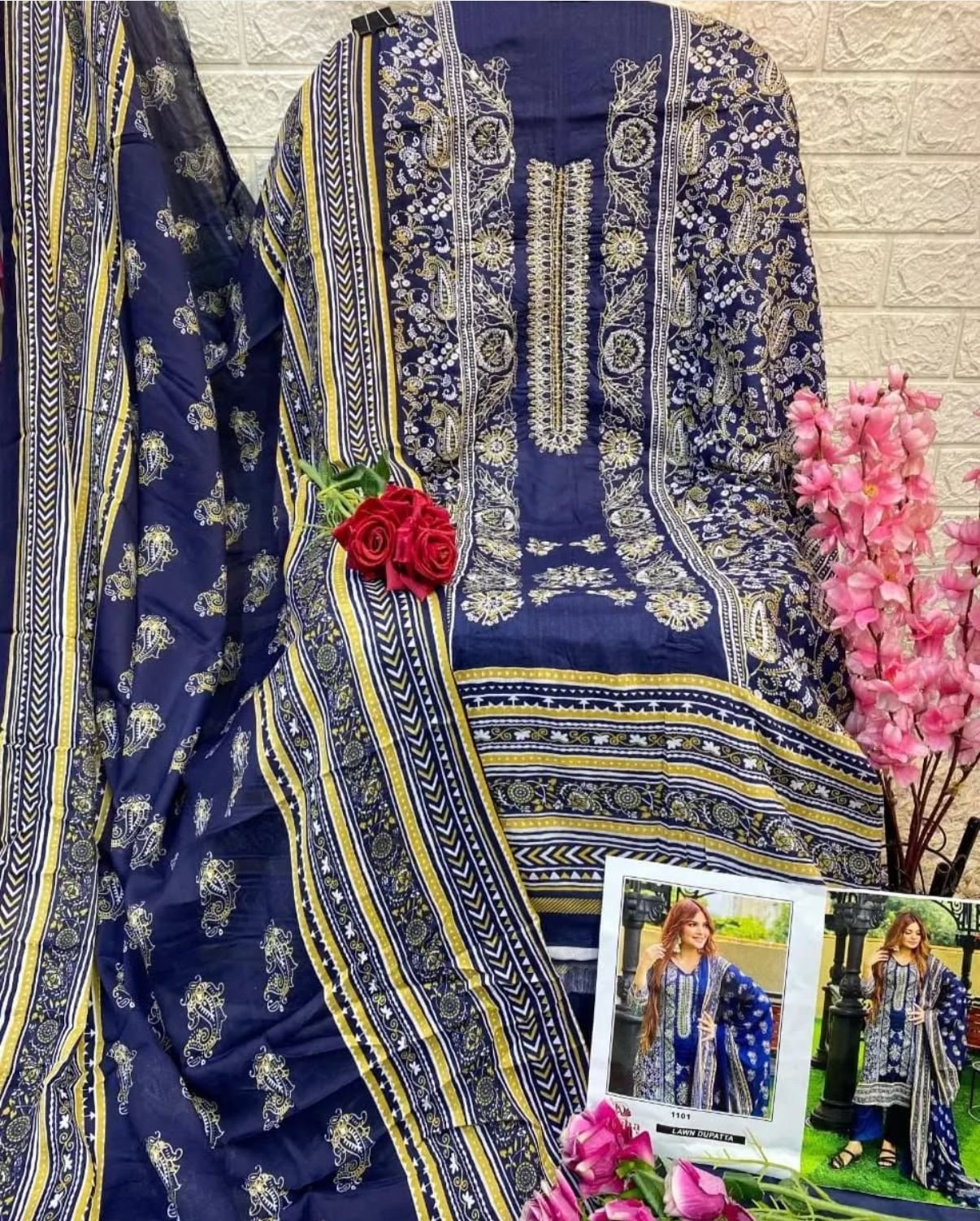 The semi-lawn bottom offers a flawless mix of comfort and grace, ensuring that you look effortlessly chic throughout the day. This outfit’s lightweight and breathable fabrics are perfect for all seasons, adding an extra edge to your wardrobe.