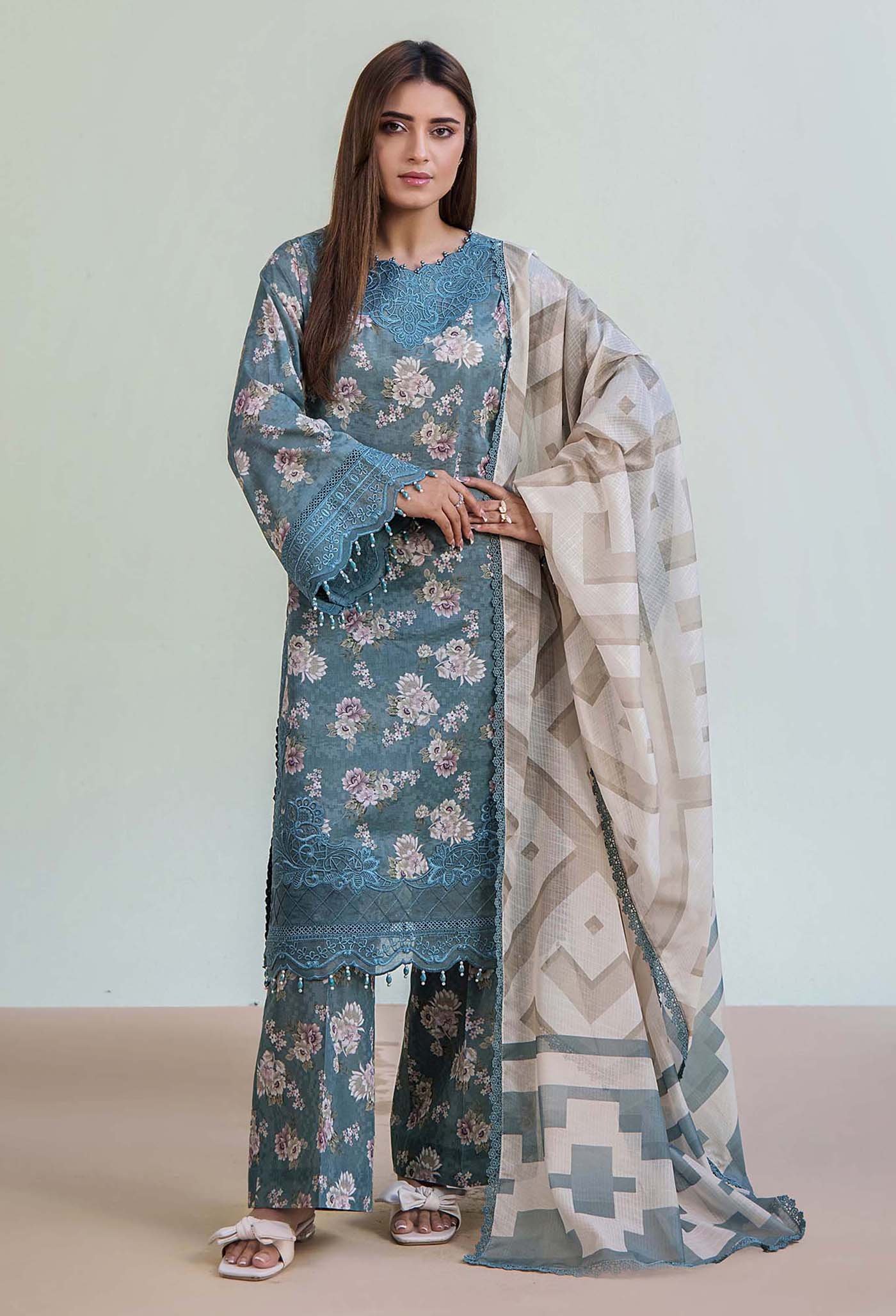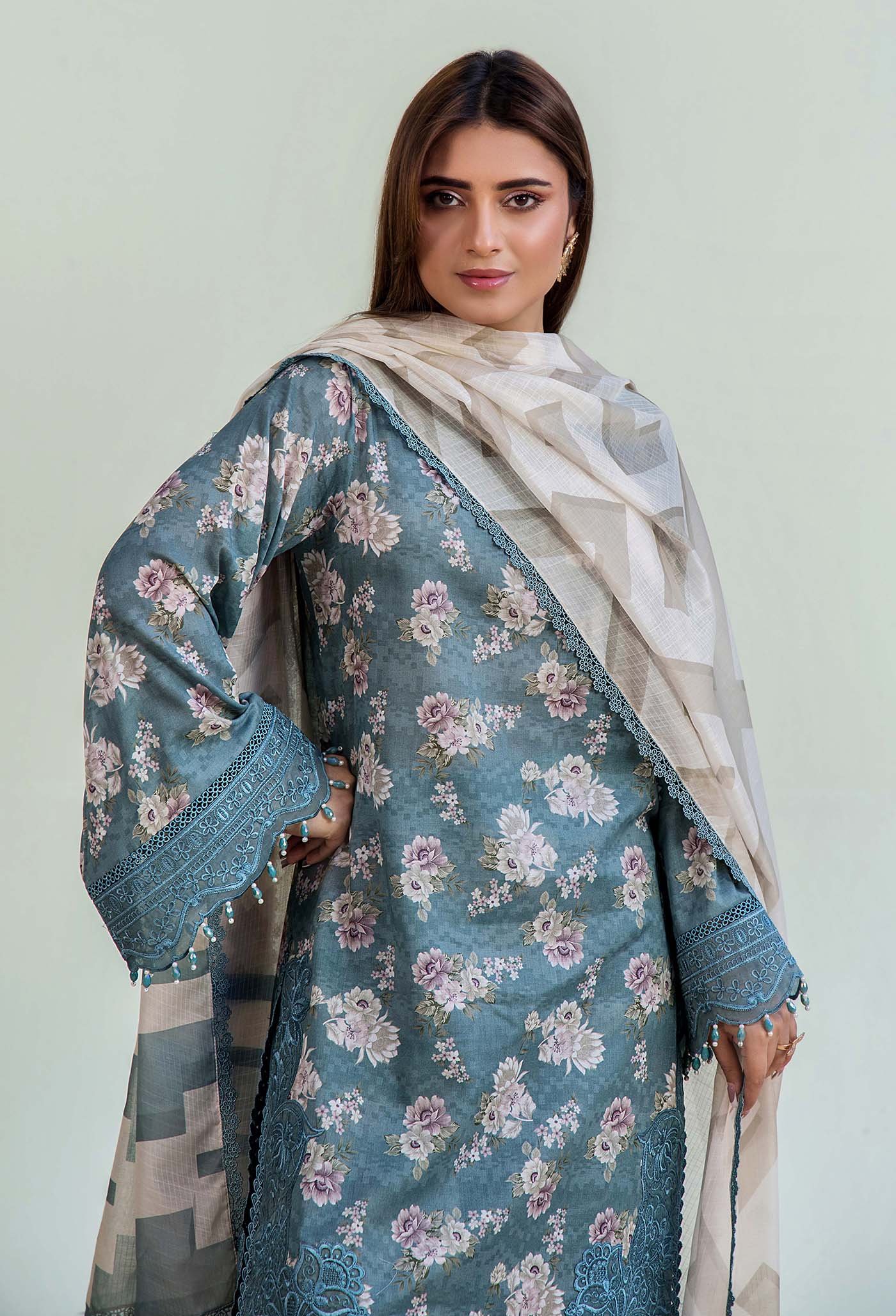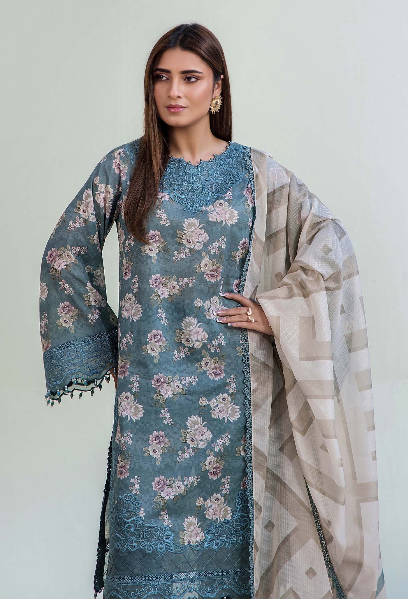 | Fabric: Digitally Printed Lawn Shirt 1-PC Digitally Printed Cotton Trouser 1-PC Digitally Printed Voil Dupatta 1-PC (Include Embroidered Accessories) |