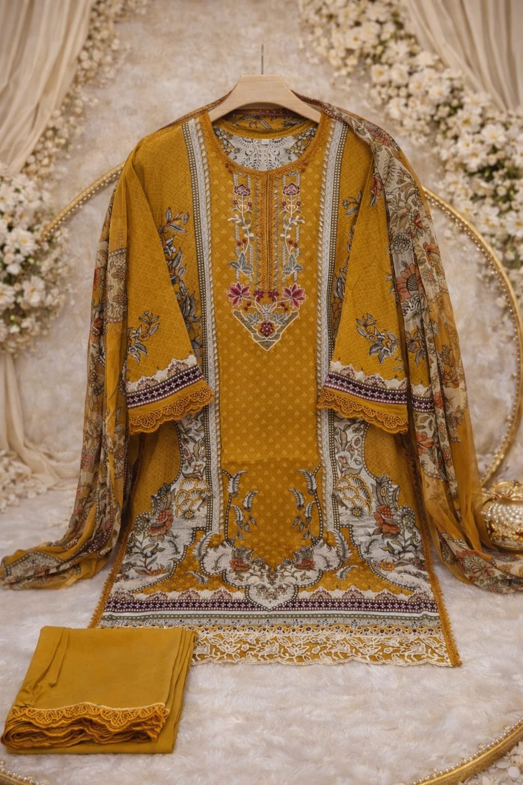 Discover the ELAF PREMIUM Ombre Luxury 02, an exquisite readymade collection tailored for women who value style and comfort. Featuring a fully stitched cotton top with intricate neck patches, fancy styled sleeves, and daman, this ensemble radiates sophistication. It’s a perfect harmony of elegance and practicality that sets you apart.