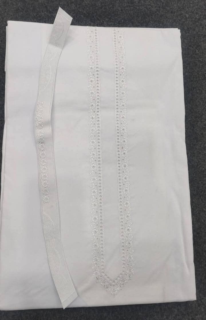 Experience the luxury of our Platinum Egyptian soft cotton fabric, specially designed for creating stunning KURTA PAJAMA, KURTA SHALWAR, PATHANI, and more. This exquisite fabric features intricate embroidery, adding an elegant touch to your traditional wardrobe. Available in a generous length sufficient for sizes ranging from SMALL to XXXL, it offers versatility and comfort without sacrificing style. Embrace tradition with grace and sophistication by choosing our premium quality fabric for your next outfit.