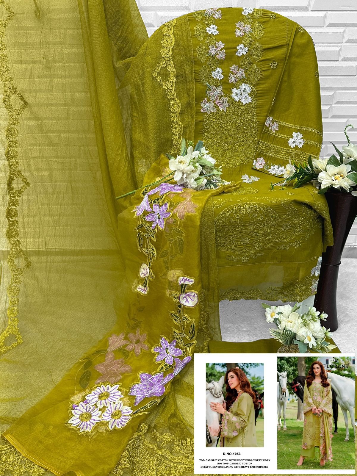 Elevate your wardrobe with this highly versatile and elegant suit set. The top is crafted from breathable and durable cambric cotton, adorned with intricate heavy embroidery that adds a touch of sophistication to your ensemble. Perfect for any occasion, the fabric ensures comfort without compromising on style.