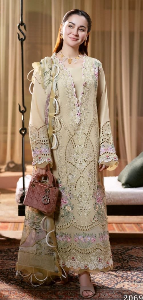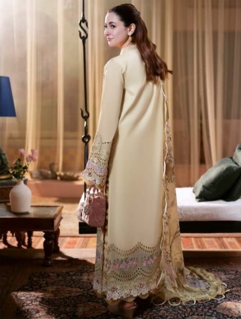 Step into sophistication with our Jade Ombre Collection, featuring A stunning 3-meter chikan embroidered lawn shirt that exudes grace and charm. Paired with a 2.5-meter digital printed bamber chiffon dupatta, this ensemble is designed to make you stand out on any occasion. Complementing the outfit is a beautifully dyed cotton trouser [ 2.5 meter ], ensuring both comfort and style. To add an extra touch of luxury, we include 2 pieces of delicate organza chikan embroidered front motifs and 1.7 yards of intricately crafted organza chikan embroidered front and back daman lace, making this collection a perfect choice for the modern woman who values elegance and artistry in her wardrobe.
