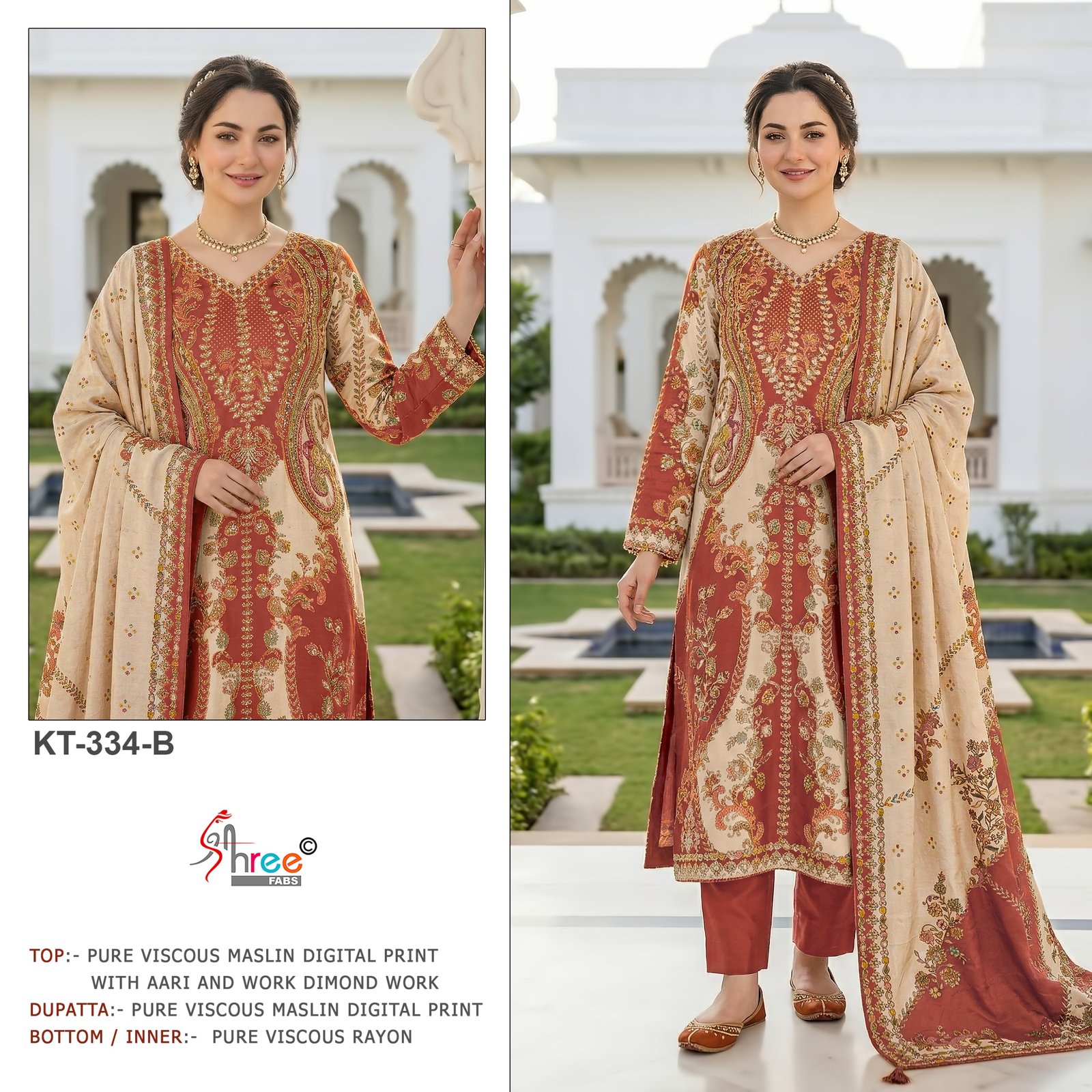 Step into luxury with our Pure Viscous Maslin Digital Print ensemble, designed to transform your wardrobe into a masterpiece. The intricate Aari work paired with refined diamond accents brings out a touch of grace that is both timeless and modern.